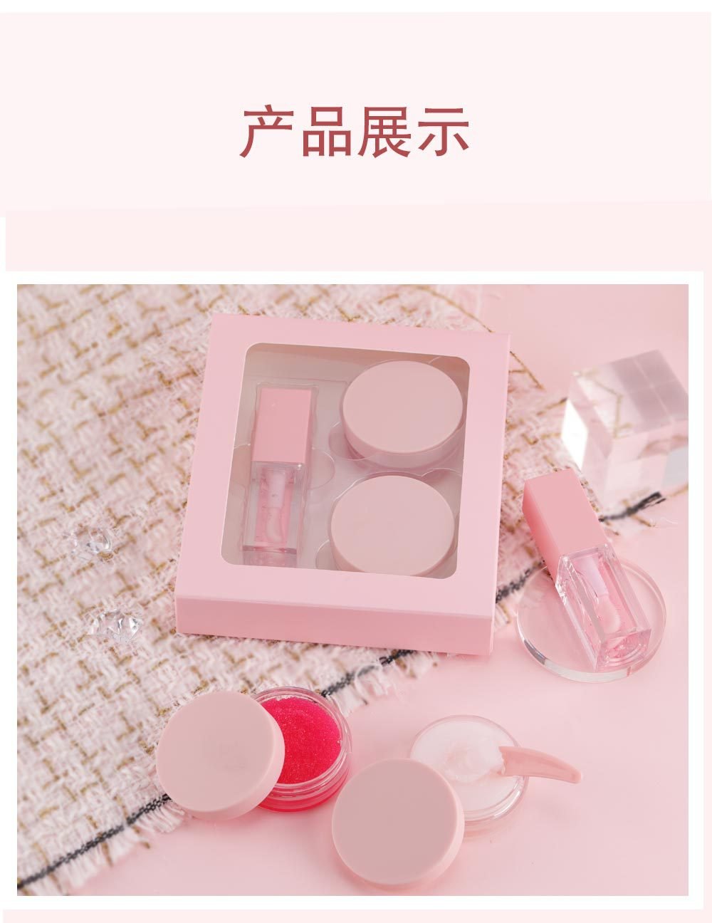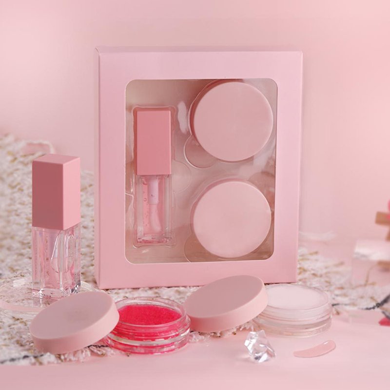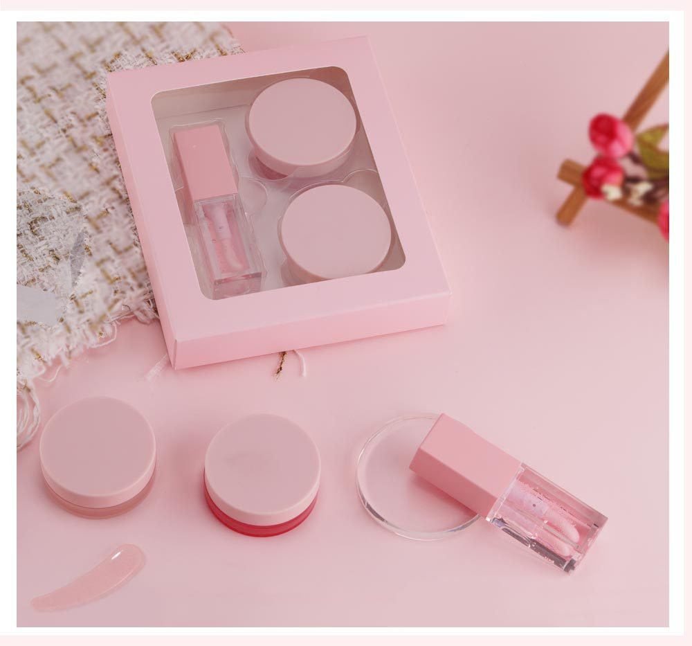 Custom Vegan Cruelty Free Pink Lip Balm Care Scrub Mask Lip Oil Glaze Kit Private Label Lip Care Set