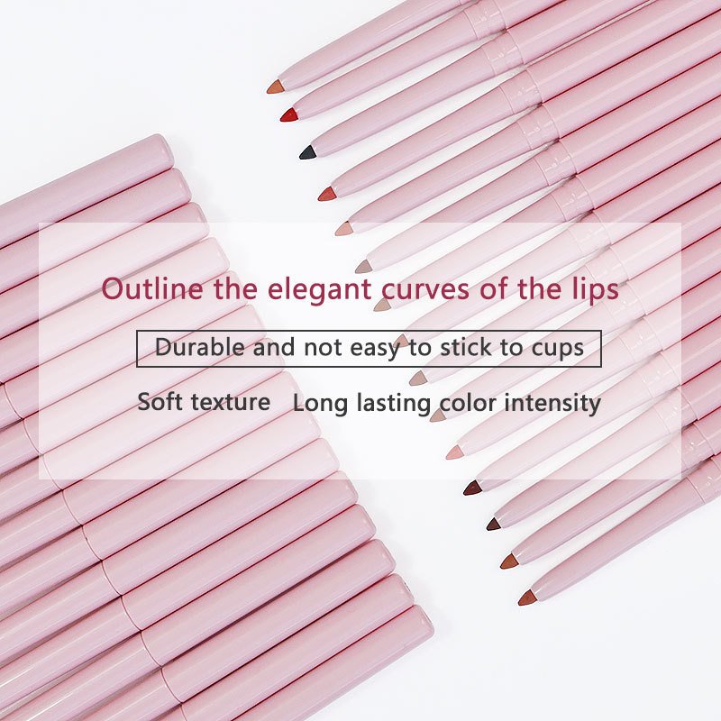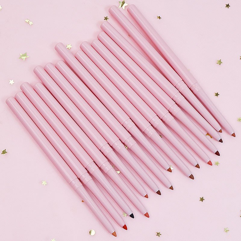 Hot Sale Pink 15 Colors Rotate Non-Stick Lip Liner Waterproof Pink Vegan Custom Private Label Lip Liner Pencil