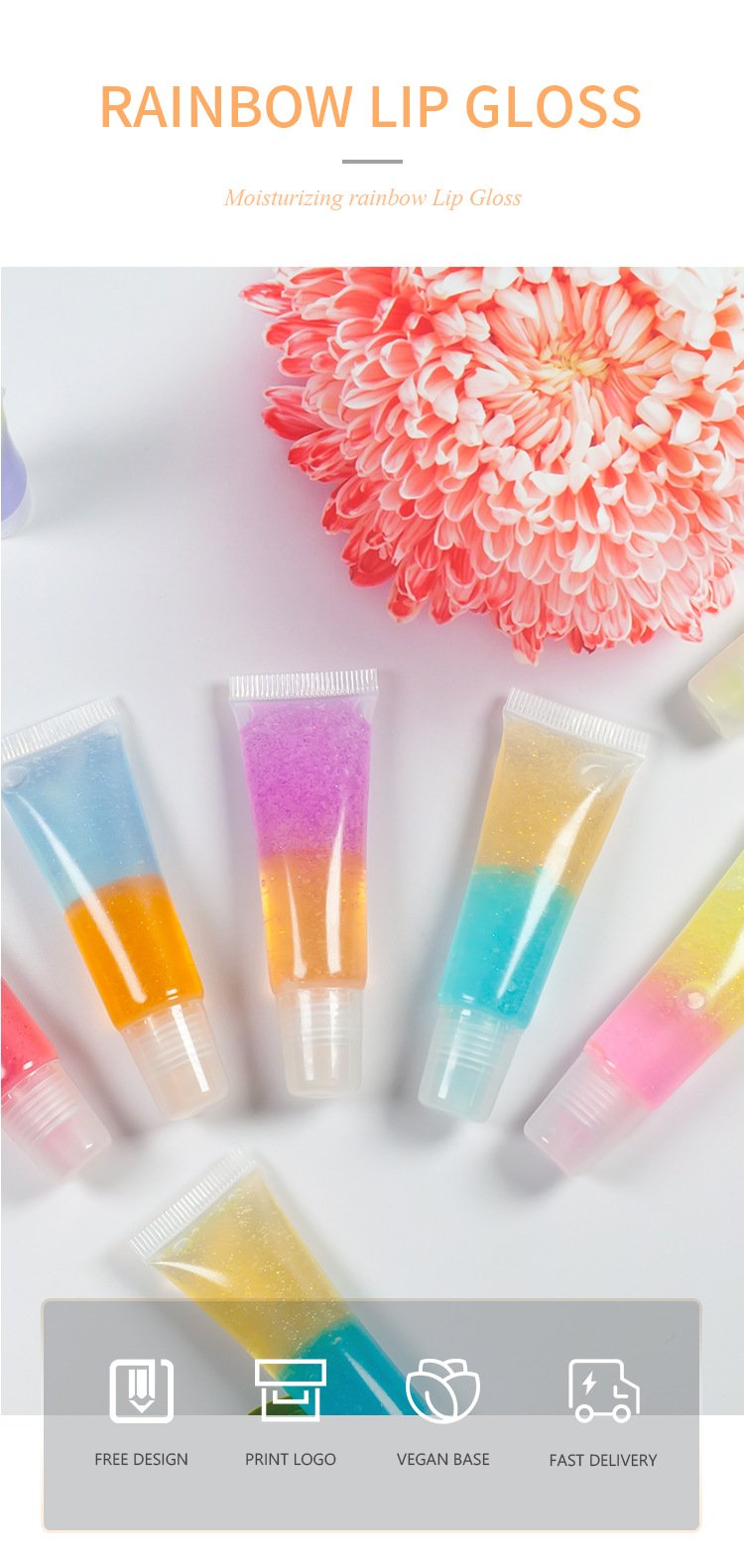 Make Your Logo Fruit Flavor Plumping Lip Gloss Base Two Colors Natural Organic Rainbow Moisturizing Lip Oil Private Label