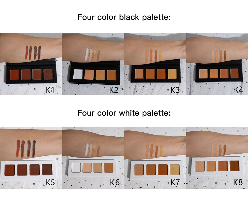 Private Label Black White Palette 4 in 1 Concealer Cream Full Coverage Contour Brighten Face Makeup