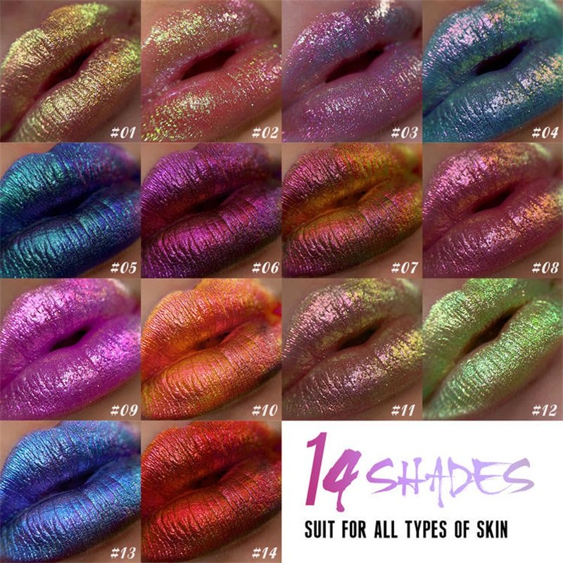 Private Label Multichrome Lipgloss 14 Color Waterproof Duochrome Shiny Lip Gloss Chameleon Pigment Lipgloss