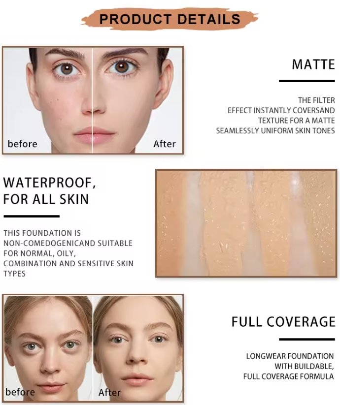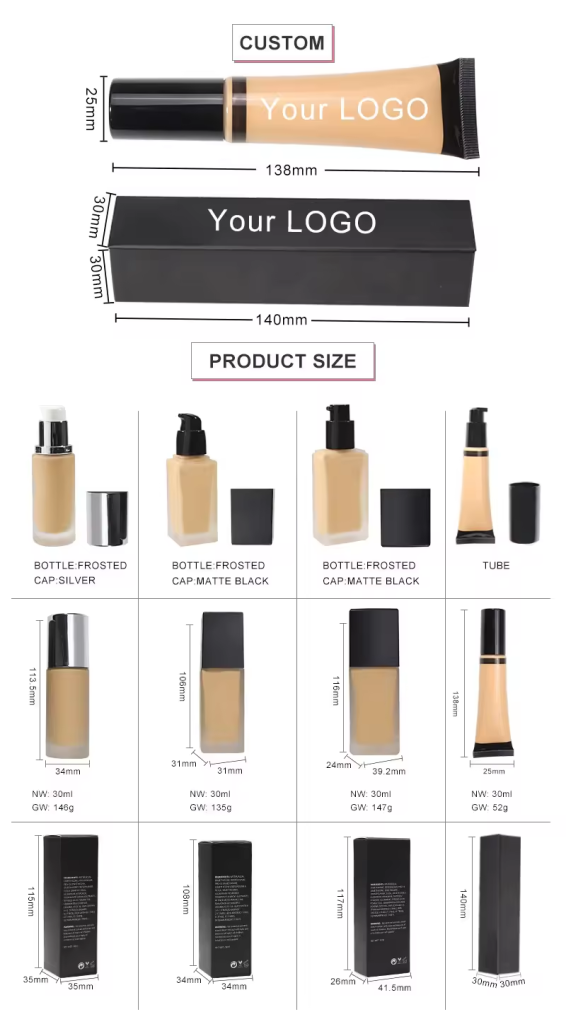 Wholesale Cosmetic private label waterproof matte full coverage lightweight Long Lasting Face Concealer liquid foundation makeup