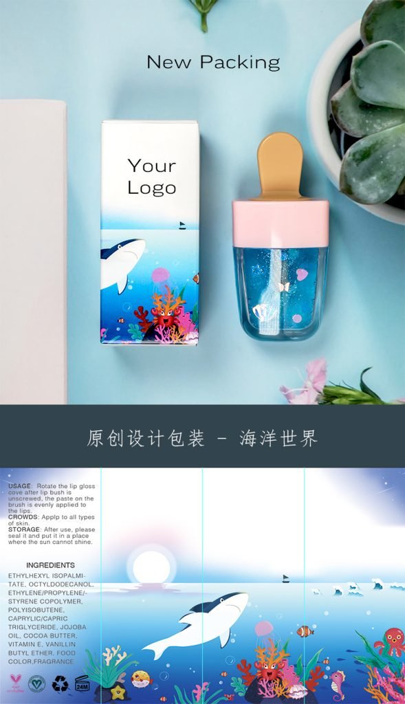 Wholesale Lip Gloss Custom Logo 8 Colors Cute Sea Box Support Waterproof Long-lasting Cosmetic Lip Makeup Ice Cream Tube